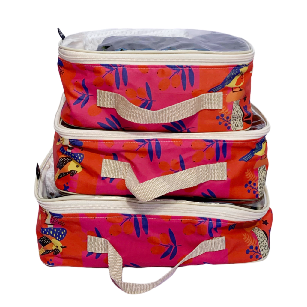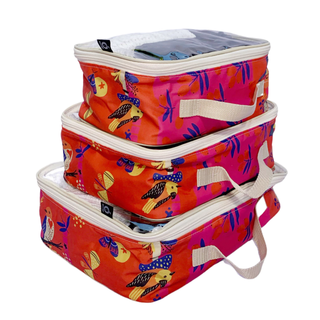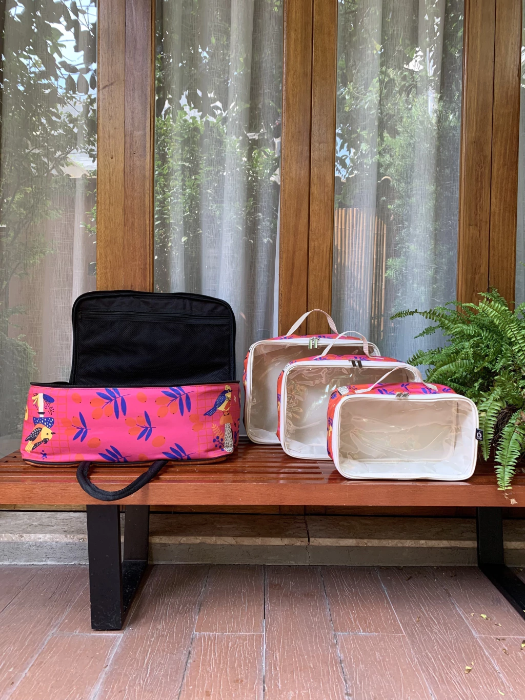 Os nossos organizadores são perfeitos para serem usados como complemento à mala Ó Design, mas você também pode usá-los para organizar nossas mochilas! A parte externa deles é feita com poliéster super colorido e plástico, super fácil de limpar. O seu forro interno é bem grosso e resistente (nylon 600).